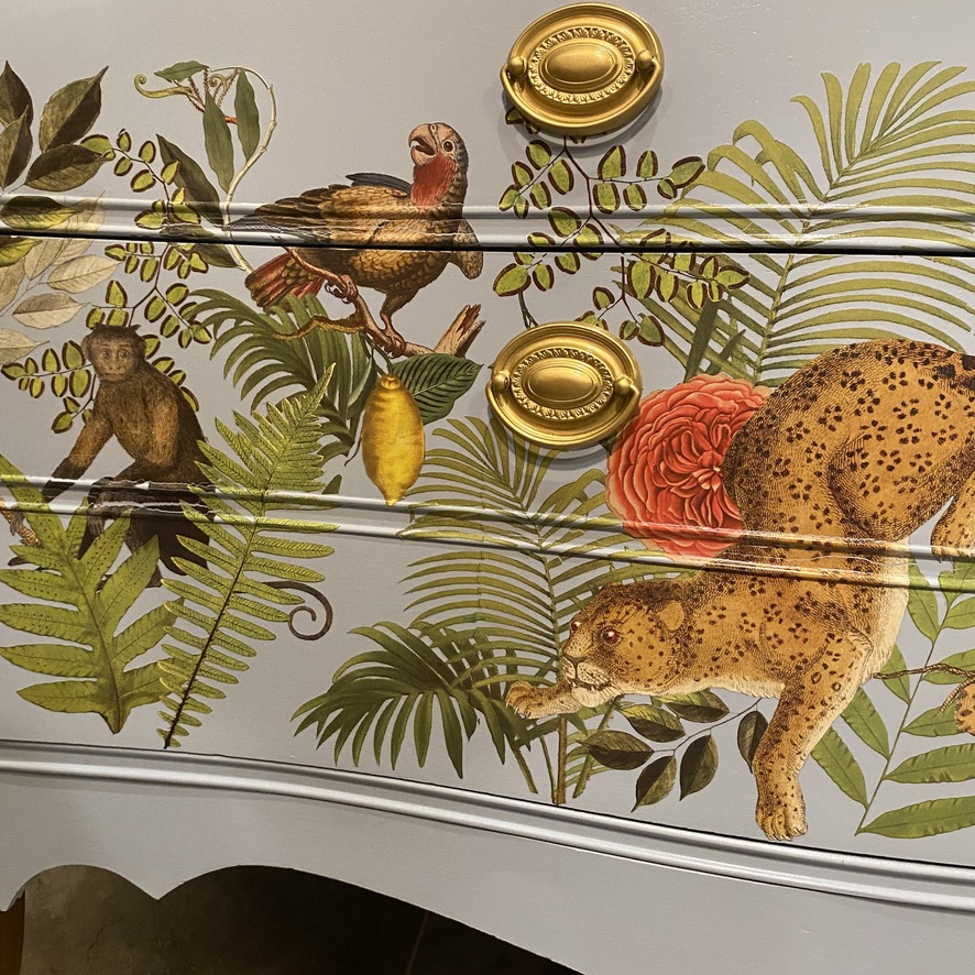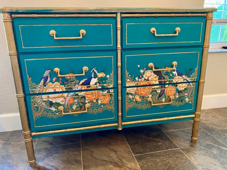 The hand-painted collection of refinished, vintage dressers exudes timeless elegance and charm. Each dresser has been lovingly restored and adorned with intricate, hand-painted designs that add a unique touch to any living space.